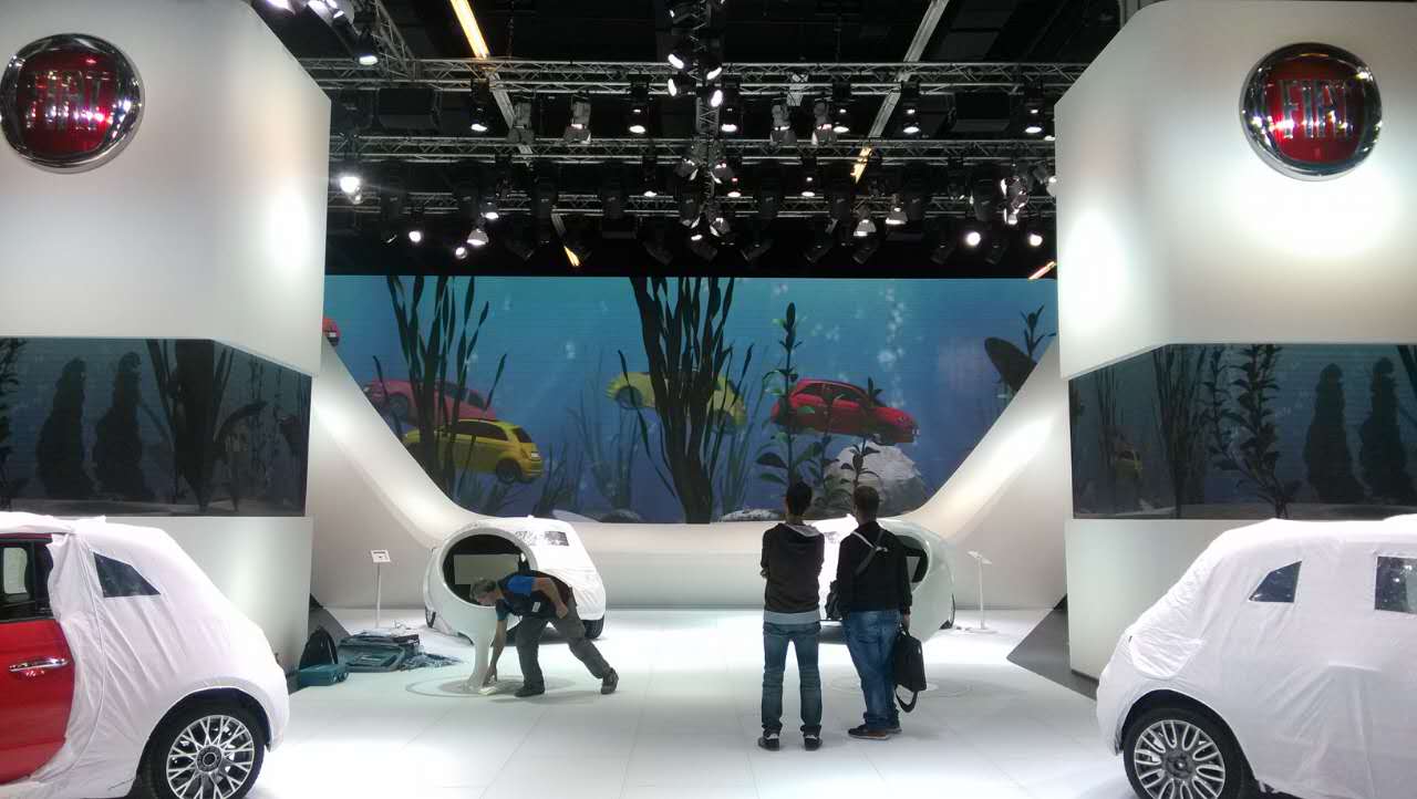 法蘭克福車展最早創(chuàng)辦于1897年,是世界最早舉辦的國際車展,也是世界規(guī)模最大的車展,有世界汽車工業(yè)“奧運(yùn)會(huì)”之稱。今年的法蘭克福車展世界十大汽車品牌——菲亞特汽車展位全部選用易事達(dá)迷你小間距P2.5顯示屏作為品牌宣傳載體。