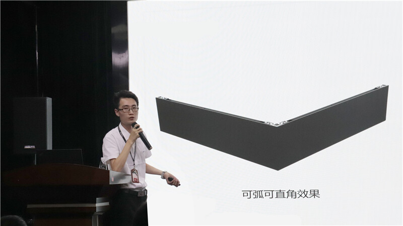 4. 可弧可直角,箱體單邊角度可以做0-45°切角,并控制拼接縫隙在2.5mm內(nèi)?,F(xiàn)在市面上做弧度的顯示屏均在3-4mm之間;