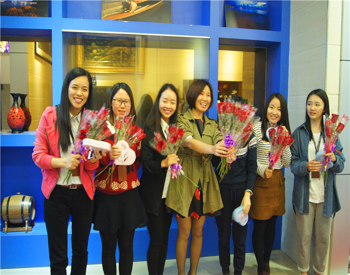 (人資潘總給女同胞們發(fā)放節(jié)日禮品和MM們愉快的合影)